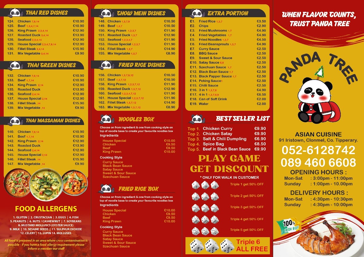 If you’re craving a cozy spot with hearty, delicious meals, the Panda Tree Menu is exactly what you’re looking for. Nestled in the heart of Clonmel, Ireland, this menu brings together an inviting array of comforting flavors, combining traditional favorites with a few fresh twists. Whether you’re in the mood for something light, like a crisp salad, or something more filling, like a rich, savory main, there’s something to please every palate. Their carefully crafted dishes showcase the finest local ingredients, ensuring each bite is full of flavor. As you explore the menu, you’ll find options perfect for every occasion, whether you’re grabbing a quick bite or settling in for a leisurely meal with friends and family. The Panda Tree Menu is all about great food, good vibes, and making sure every visit feels like a treat.